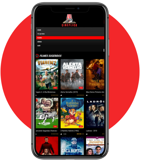 O CineFlick oferece um aplicativo totalmente exclusivo compatível com seu celular, televisores, aparelhos de TV Box, videogame e muito mais.